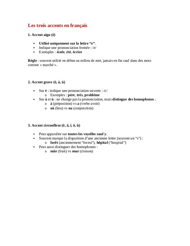Les trois accents en français
