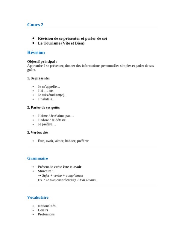 Français Niv 2