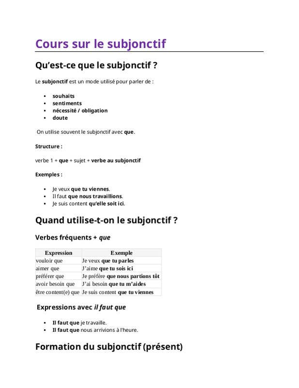 Cours Sur Le Subjonctif
