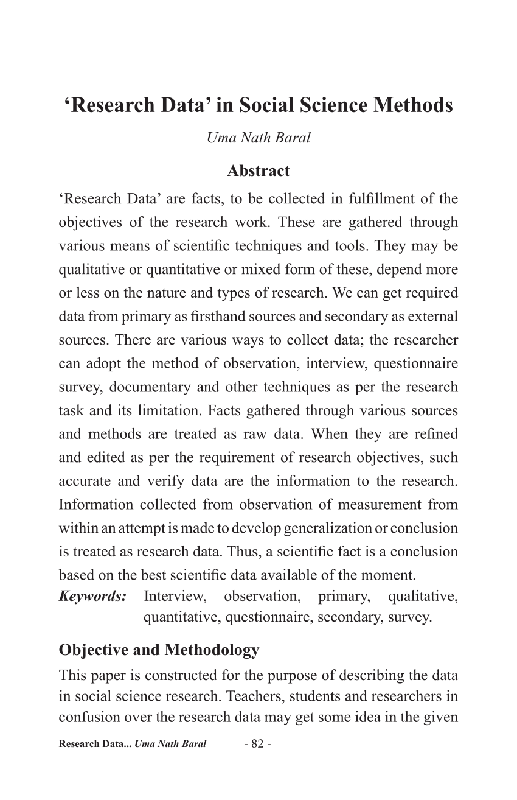 PDF | p>‘Research Data’ are facts, to be collected in fulfillment of the objectives of the research work. These are gathered through various means of... | Find, read and cite all the research you need on ResearchGate